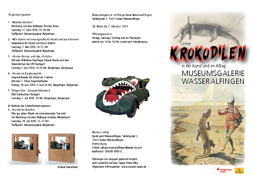 Flyer Seite 1 Kroko.pdf.160554 Published March 12, 2018 at 859 × 612 in “Unter Krokodilen – in der Kunst und im Alltag!”