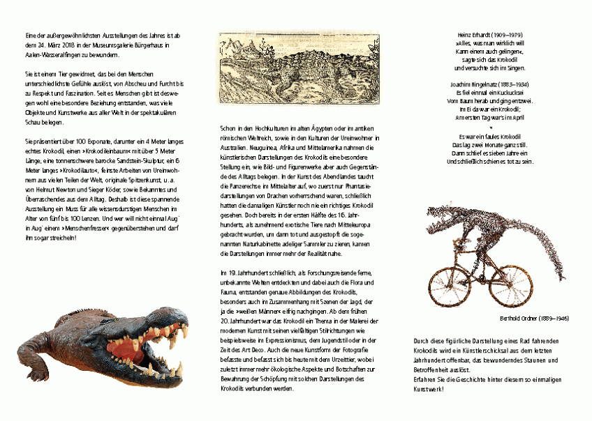 Flyer Seite 2 Kroko.pdf.160563 Published March 12, 2018 at 859 × 612 in “Unter Krokodilen – in der Kunst und im Alltag!”
